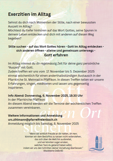 08.30 stille Anbetung, danach Rosenkranzgebet